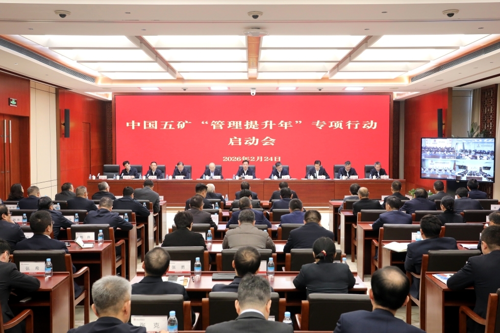 2月24日,中国五矿召开“管理提升年”专项行动启动会。会议深入学习贯彻习近平总书记关于国有企业改革发展和党的建设的重要论述,全面落实中国五矿2026年度工作会议部署要求,对标世界一流企业管理标准,巩固拓展2025年“管理规范年”建设成效,对“管理提升年”专项行动进行系统部署、全面动员。中国五矿党组书记、董事长陈得信主持会议并讲话。党组副书记、董事、总经理朱可炳宣贯专项行动方案。中国五矿领导班子其他成员出席会议。